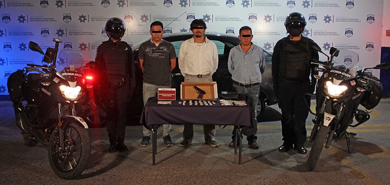 En el marco del Operativo Guadalupe – Reyes, el Gobierno de la Ciudad de Puebla que encabeza la alcaldesa Claudia Rivera Vivanco, a través de la Secretaría de Seguridad Ciudadana (SSC) del Municipio detuvo a tres integrantes de una banda delictiva identificada como «Los Escarabajos», presuntamente dedicada al robo a tiendas Oxxo. Los detenidos son: Javier “N.”, de 54 años de edad, Hugo “N.”, de 39 años de edad y Oscar “N.”, de 31 años de edad.