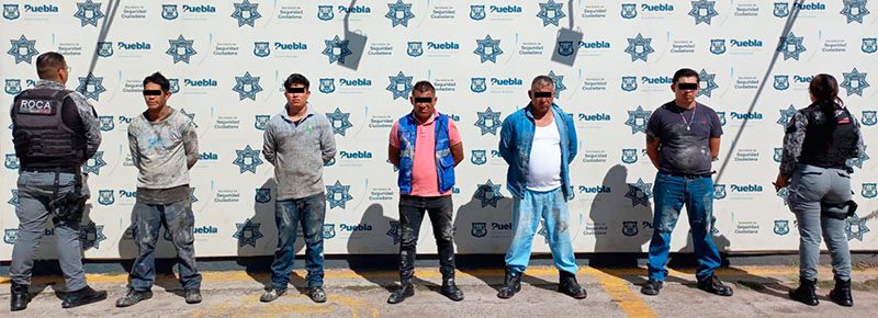 La mañana de este martes, elementos de la Secretaría de Seguridad Ciudadana (SSC) del municipio de Puebla, detuvieron en calles de la colonia El Carmen, a César “N.” de 45 años de edad, Marco “N.” de 41 años de edad, Enrique “N.” de 32 años de edad, Andrés “N.” de 29 años de edad y a Arturo “N.” de 18 años de edad por su participación en el delito de robo de cable en agravio de la empresa Telmex.