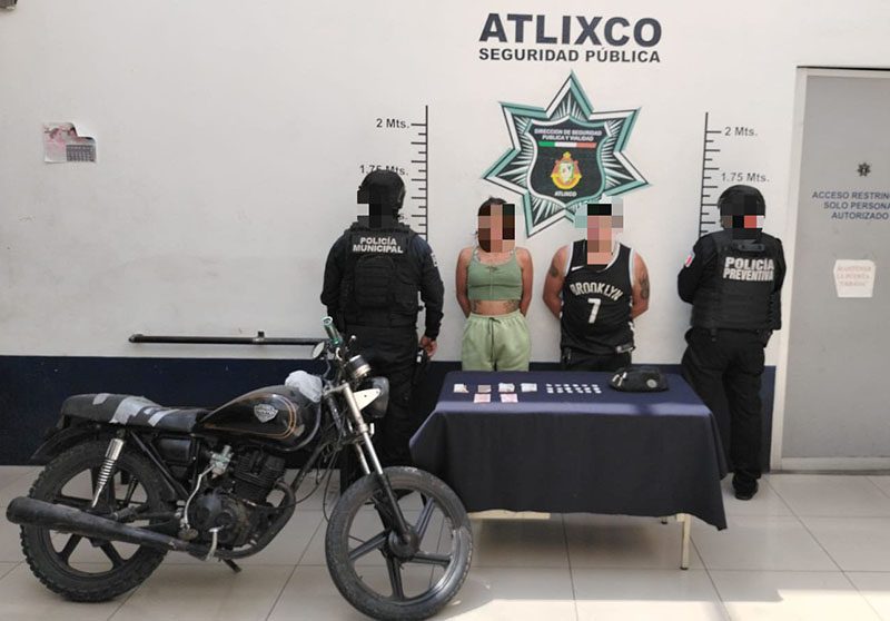 Elementos de la Secretaría de Seguridad Ciudadana de Atlixco detuvieron en flagrancia a una pareja que se encontraba intercambiando sustancias ilícitas en la colonia Tehuixpango.