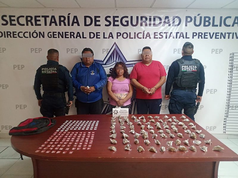 Los detenidos se identificaron como Pedro P., de 36 años; Teresa M., de 51 años, y Gerardo P., de 45 años, a quienes les aseguraron 152 dosis de aparente cristal y 80 envoltorios con hierba verde con las características de marihuana.