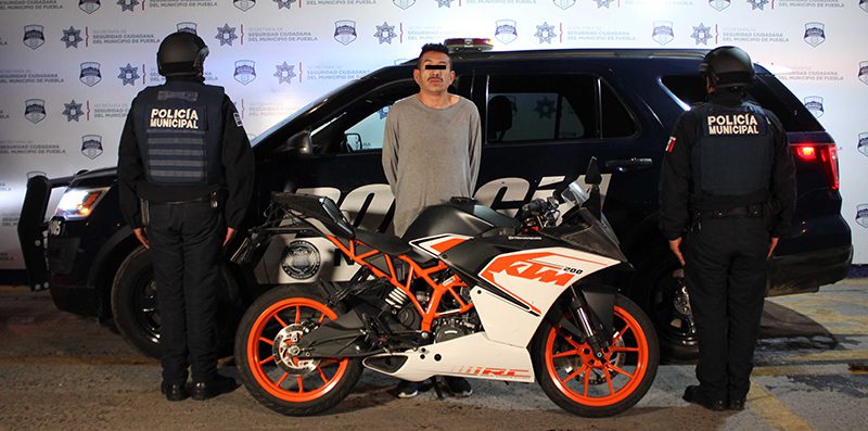 El suceso tuvo lugar sobre el Bulevar Esteban de Antuñano, a la altura de la colonia Ampliación Reforma Sur, cuando Policías Municipales del Grupo de Intervención Proactiva (GIP) se percataron que un ciudadano solicitó ayuda para detener a un masculino, a quien señaló como responsable de desapoderarlo de una motocicleta marca KTM, tipo RC 200, color naranja, blanco y negro.
