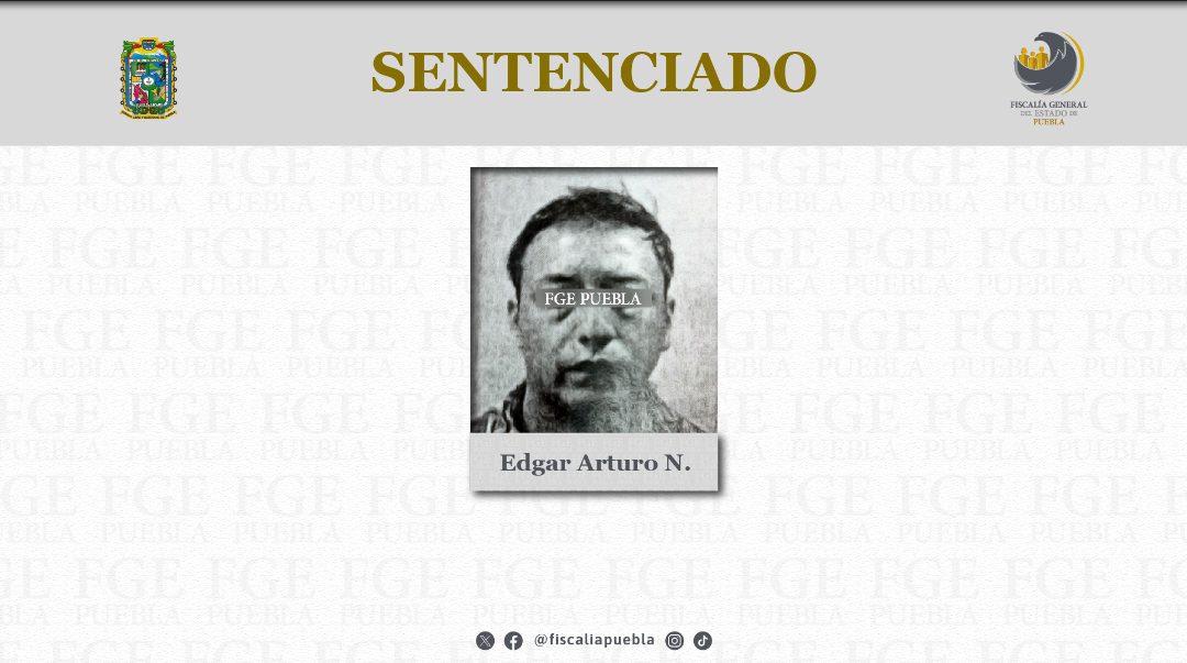 Con base en una investigación plenamente sustentada, la Fiscalía General del Estado de Puebla obtuvo sentencia condenatoria de más de 27 años de prisión en contra de Edgar Arturo N., penalmente responsable del delito de homicidio calificado.