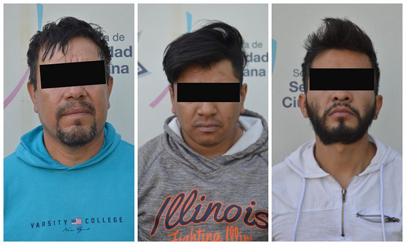 Como resultado del combate frontal contra la delincuencia, la Secretaría de Seguridad Ciudadana (SSC) del Municipio detuvo a Israel “N.”, de 56 años de edad; Esli “N.”, alias “Chaparro”, de 32 años de edad y Jesús “N.”, de 29 años de edad, identificados como posibles integrantes de “Los Chapas”, dedicados al robo a negocio con violencia.