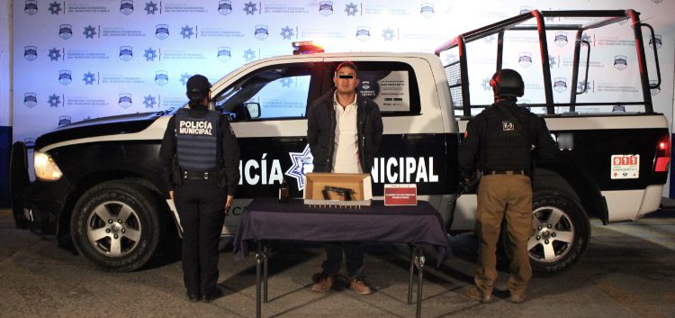 Como resultado del robustecimiento de esquemas policiales para inhibir la comisión de conductas delictivas, el Gobierno de la Ciudad de Puebla que encabeza la Alcaldesa, Claudia Rivera Vivanco, a través de la Secretaría de Seguridad Ciudadana (SSC) del Municipio reportó la detención de Salvador “N.”, de 26 años de edad, por su probable participación en hechos con apariencia de delito de portación de arma de fuego sin la licencia correspondiente.