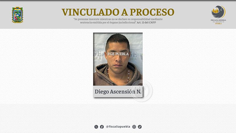 En la audiencia llevada a cabo el 28 de enero, la Fiscalía formuló imputación y fueron expuestos datos de prueba ante el Juez de Control quien determinó vincular a proceso a Diego Ascensión N., imponiéndole como medida cautelar prisión preventiva justificada.