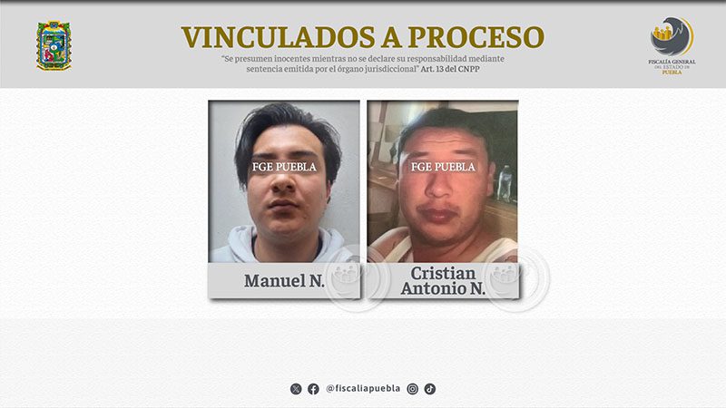 Por hechos distintos, la Fiscalía General del Estado de Puebla obtuvo la vinculación a proceso de Manuel N. de 27 años y Cristian Antonio N. de 32 años, por su posible responsabilidad en el delito de estupro.