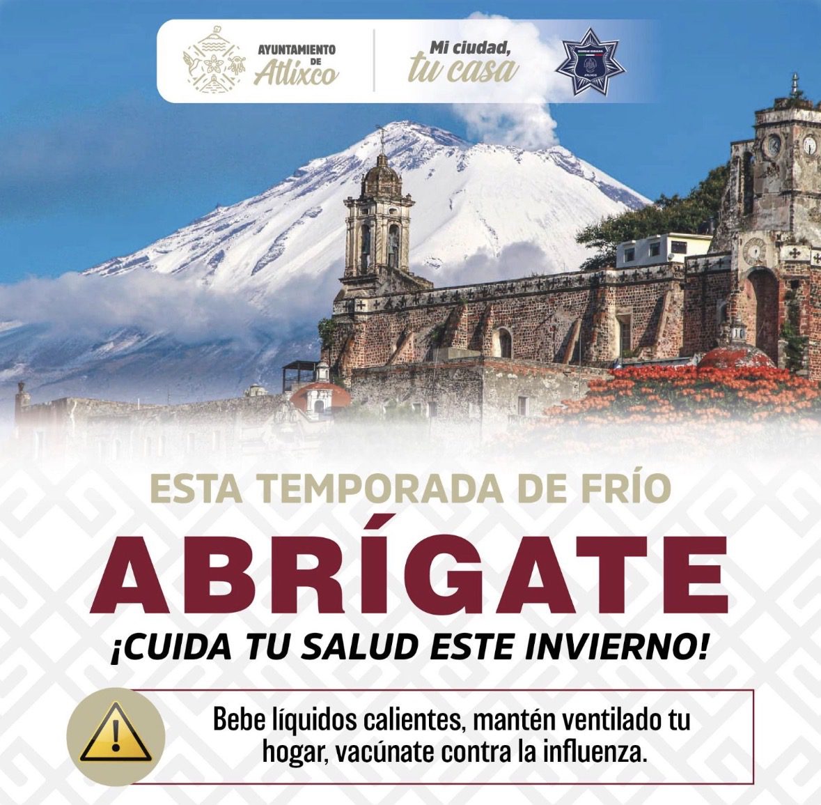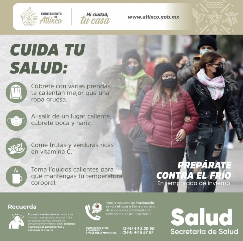 La presidenta de Atlixco, Ariadna Ayala, a través de la Dirección de Protección Civil, exhorta a la ciudadanía a reforzar las acciones preventivas ante la llegada del invierno y la temporada de frentes fríos, con el fin de proteger la salud y el bienestar de las familias atlixquenses.
