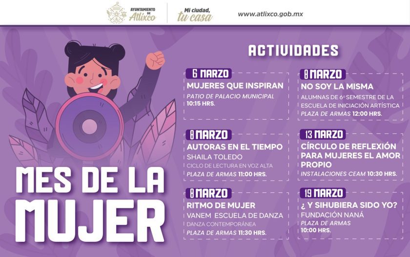 La presidenta de Atlixco, Ariadna Ayala conmemorará el Día Internacional de la Mujer con el festival “Mujeres que Inspiran”, un programa cultural y de reflexión que reconoce el papel fundamental de las mujeres en la vida social y comunitaria del municipio.