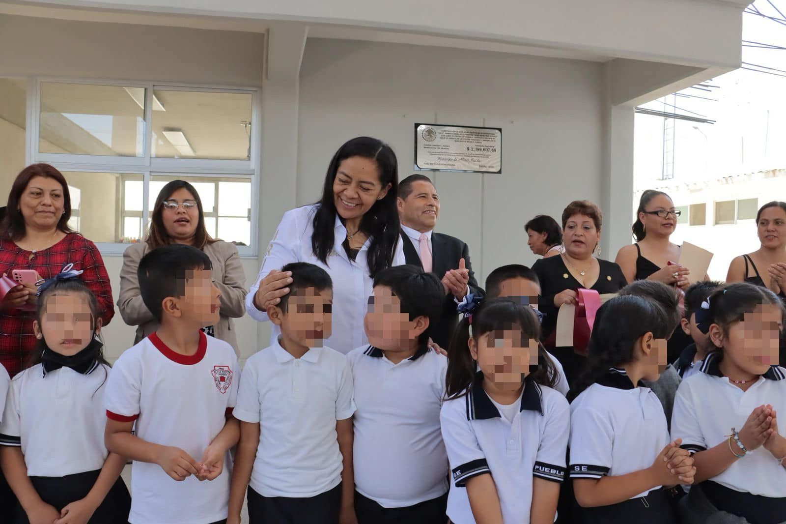 La presidenta de Atlixco, Ariadna Ayala, inauguró 2 aulas didácticas en la primaria José María Pino Suárez.