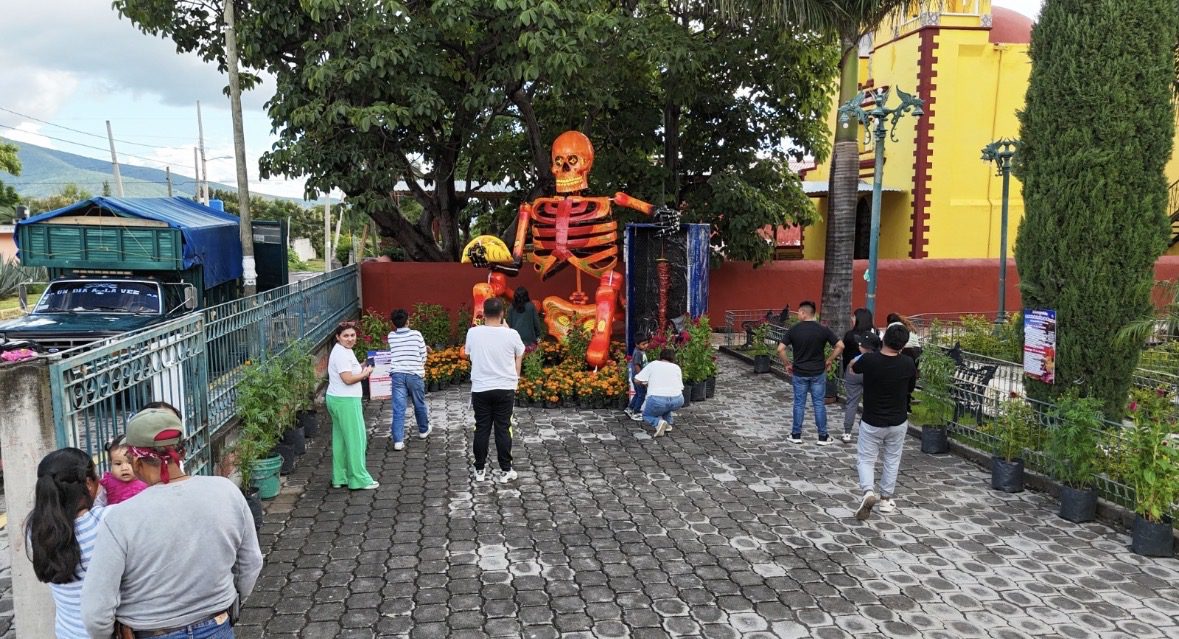 En la recta final del Festival Internacional Valle de Catrinas, la presidenta de Atlixco, Ariadna Ayala, invita a visitar la obra “La Catrina Taquero”, ubicada en Santo Domingo Atoyatempan.