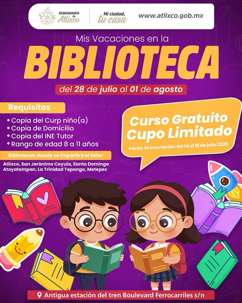 – Cupo limitado. Regístrate directamente en tu biblioteca con: CURP del menor, INE del tutor y Comprobante de domicilio.