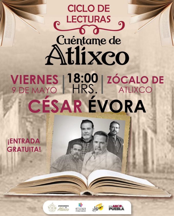 El Ayuntamiento de Atlixco, encabezado por la presidenta municipal Ariadna Ayala, invita a la ciudadanía al ciclo de lecturas “Cuéntame de Atlixco”, que se realizará este viernes 9 de mayo a las 6 de la tarde en el zócalo de la ciudad.