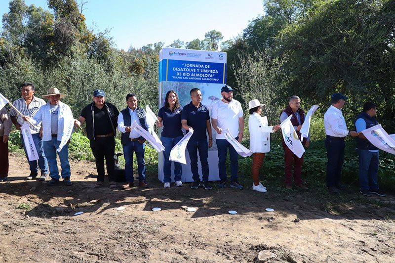 El presidente municipal de San Andrés Cholula, Mundo Tlatehui, dio el banderazo de arranque de la Jornada de Desazolve y Limpieza del Río Almoloya en San Antonio Cacalotepec a cargo de la Secretaría de Agua Potable, Drenaje y Alcantarillado.
