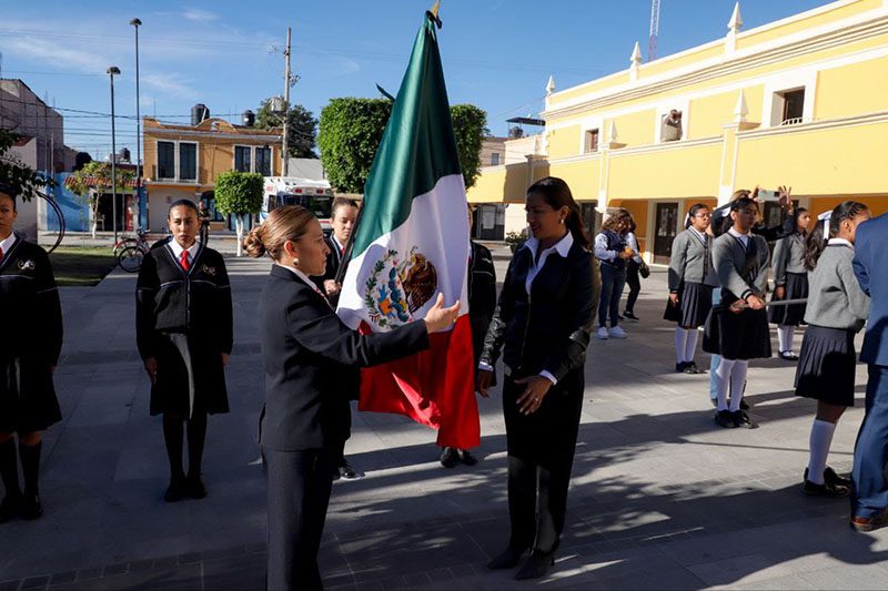 Cada una de las entregó sus banderas para proceder a su incineración, como lo dicta la Ley de la Bandera para el retiro de su vida útil, y les fue dada un nuevo lienzo tricolor para sus actividades académicas.