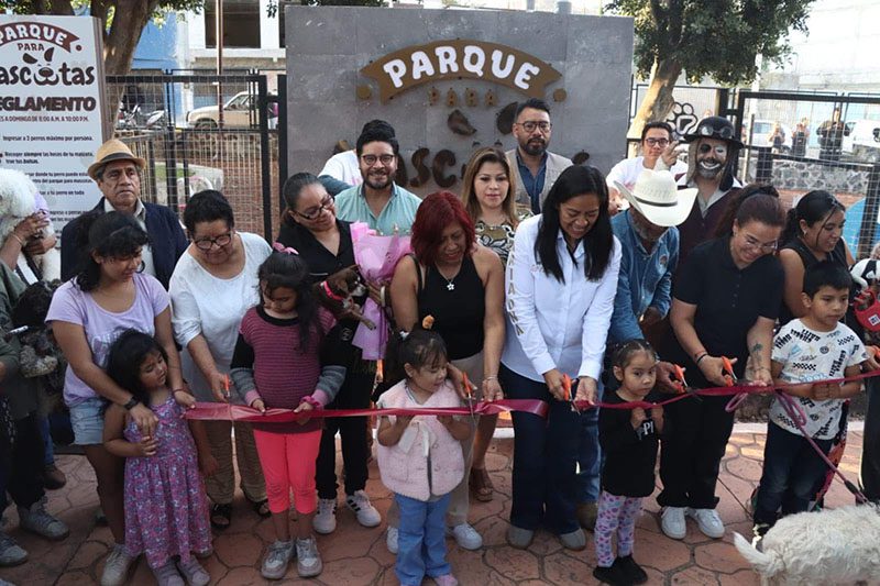 La presidenta municipal de Atlixco, Ariadna Ayala, inauguró el primer parque para mascotas en el renovado jardín de la colonia Revolución.