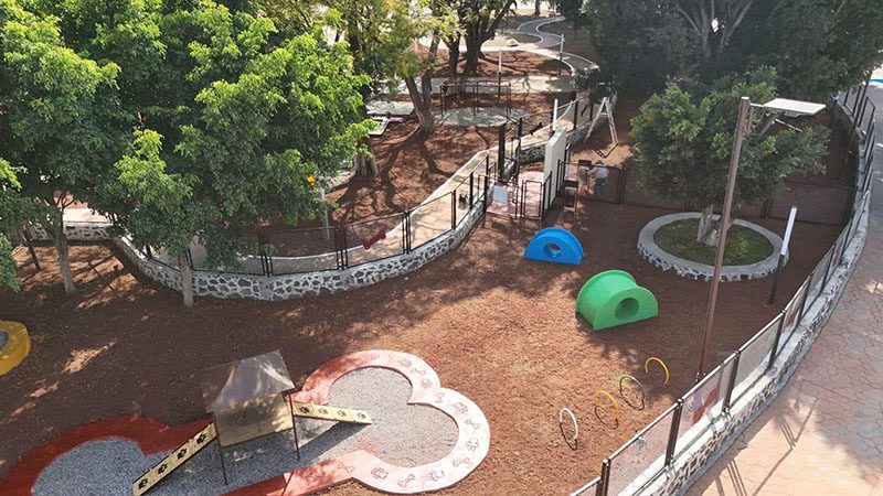 La rehabilitación incluyó juegos para lomitos, áreas de hidratación, protección metálica, luminarias, así como la mejora del kiosco y los aparatos de gimnasio al aire libre, garantizando seguridad para niñas, niños y sus familias.