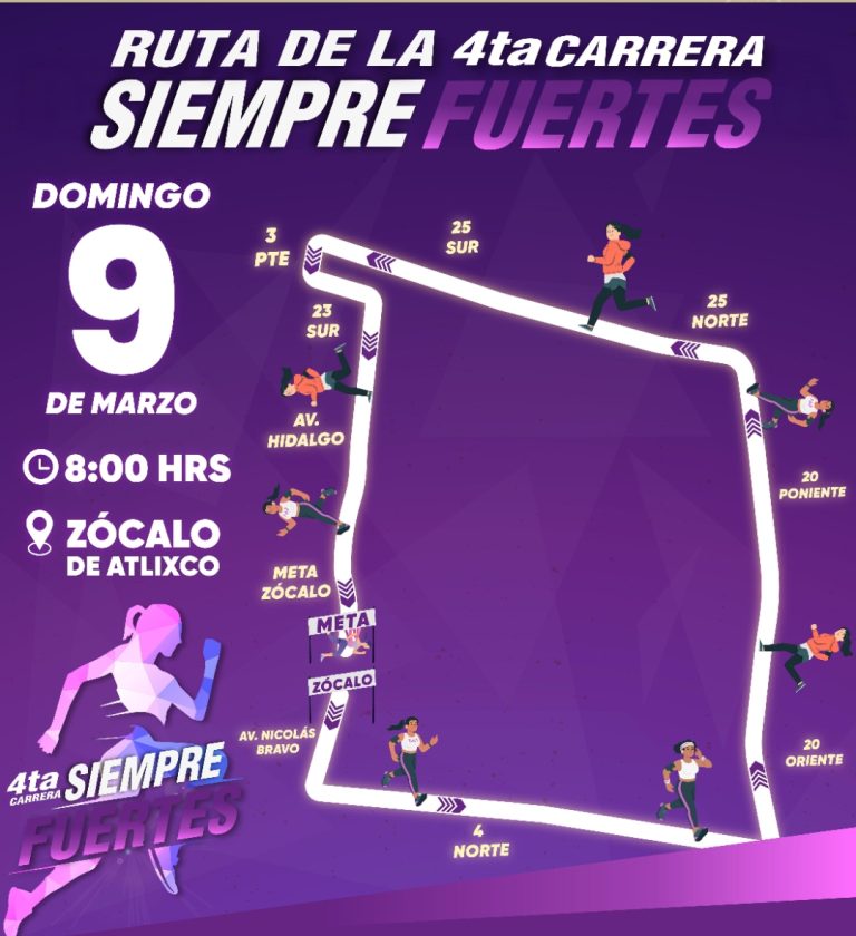 Este domingo 9 de marzo, el Ayuntamiento de Atlixco que preside Ariadna Ayala se une a la conmemoración del Día Internacional de la Mujer con la carrera «Siempre Fuertes».