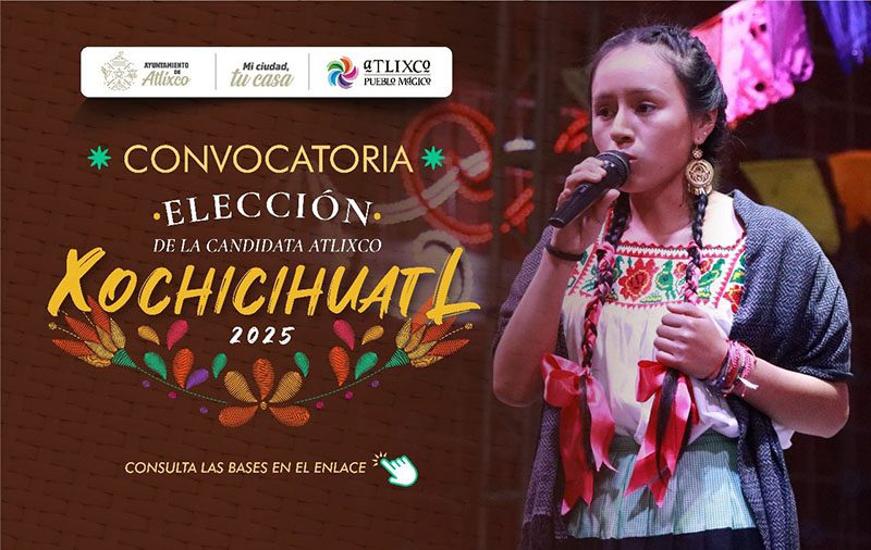 En el marco de los festejos por el 60 aniversario del Huey Atlixcáyotl, el Gobierno Municipal de Atlixco que preside Ariadna Ayala, invita a las mujeres de pueblos originarios del municipio a participar en la elección de la candidata que representará a Atlixco en el certamen de la Xochicihuatl (Mujer Flor), 2025.