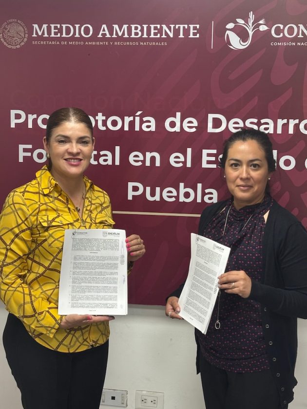 Este convenio fue firmado por la presidenta municipal de Zacatlán, Bety Sánchez y Carmen Rosana Estrada Ávila, titular de la oficina de presentación estatal en el Estado de Puebla de la CONAFOR.