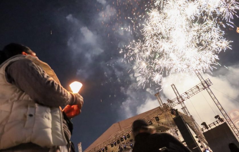 En punto de las 20:00 horas, el primer cuadro de la ciudad quedó a oscuras, dando paso a velas y antorchas que envolvieron de misticismo la Plaza de la Concordia y marcaron el inicio del Concierto de Campanas, apreciado en silencio por cientos de asistentes.
