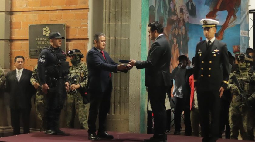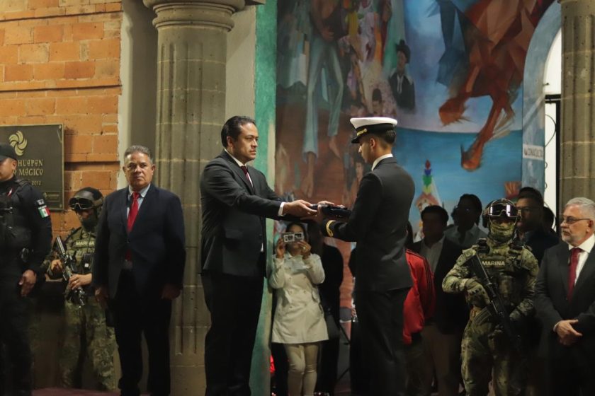 Esta ceremonia se llevó a cabo en la explanada del zócalo municipal, contando con la participación de las fuerzas municipales, el Cabildo entrante y el secretario de Seguridad Pública de Chignahuapan, el teniente Jorge Enrique Hernández Valenzuela.