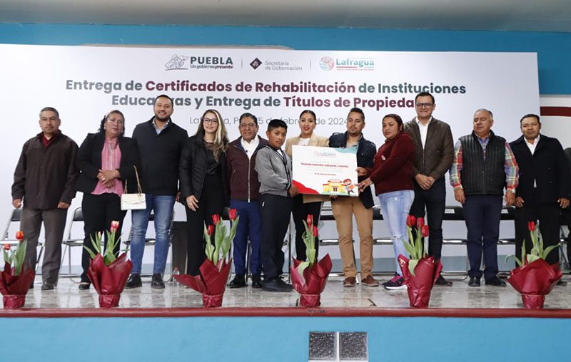 Para brindar certeza jurídica a las familias sobre la propiedad de sus inmuebles, el gobierno presente de Sergio Salomón, a través de la Secretaría de Gobernación (Segob), llevó a cabo la entrega de 70 títulos de propiedad del Programa de Regularización de Predios Rústicos, Urbanos y Suburbanos, en el régimen de propiedad privada, así como certificados de rehabilitación de instituciones educativas.
