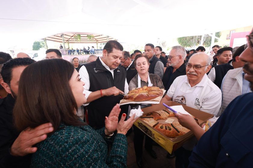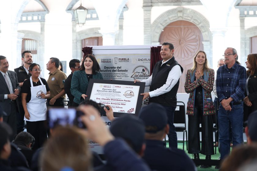 - Después develó junto con la presidenta Bety Sánchez y los panaderos de Zacatlán, la placa conmemorativa a la declaratoria del Pan con Queso de este municipio como Patrimonio Cultural Intangible del Estado de Puebla. Además, anunció inversión de obra comunitaria para apoyar a las y los panaderos.