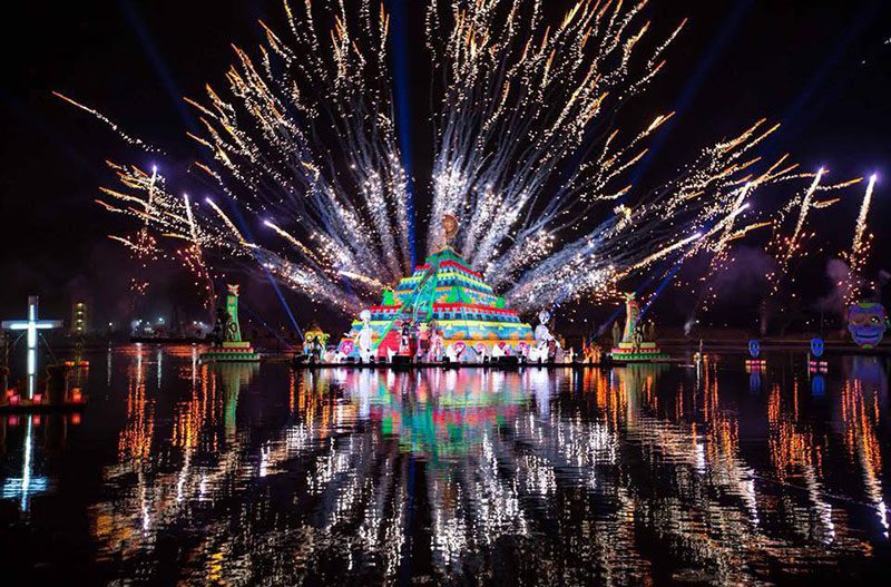 El festival recrea el mítico viaje de las almas al Mictlán, con un enfoque simbólico y artístico. Uno de los momentos más destacados es la instalación de la Ofrenda de las Mil Luces en el Zócalo, donde cada luz representa un alma. Posteriormente, los visitantes recorren la Calzada de las Almas hasta la laguna de Chignahuapan, donde se representa el primer páramo del inframundo mediante un montaje escénico que incluye 82 actores, plataformas sobre el agua, pirotecnia y un despliegue de luz de primer nivel.