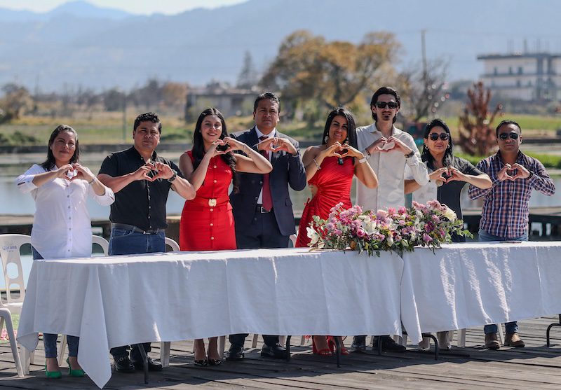 Como parte de esta jornada especial, y en un cierre significativo, las parejas también participaron en una boda ancestral, uniendo sus vidas a través de un ritual simbólico que resaltó la identidad y las tradiciones del municipio, dando un sentido espiritual y cultural a la celebración.