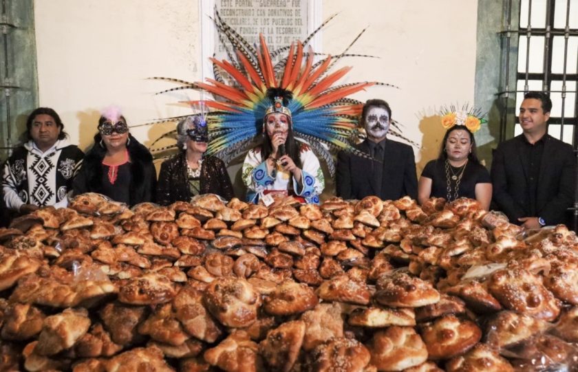 Posteriormente, se inauguró la Hojaldra Monumental en las inmediaciones de la Presidencia Municipal, donde familias cholultecas y visitantes pudieron disfrutar de este símbolo gastronómico que enmarca la celebración del Día de Muertos.