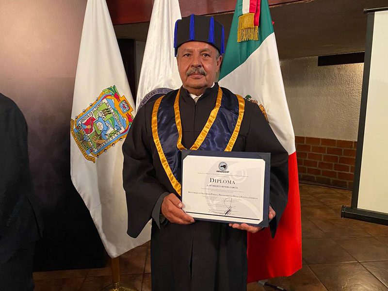 El secretario de Seguridad Pública y Protección Ciudadana de San Andrés Cholula, Humberto Rivera García, se graduó del Doctorado en Seguridad Pública, Procesamiento Penal y Política Criminal en el Instituto Mexicano de Investigación y Desarrollo en Ciencias Policiales (IMIDECIP).