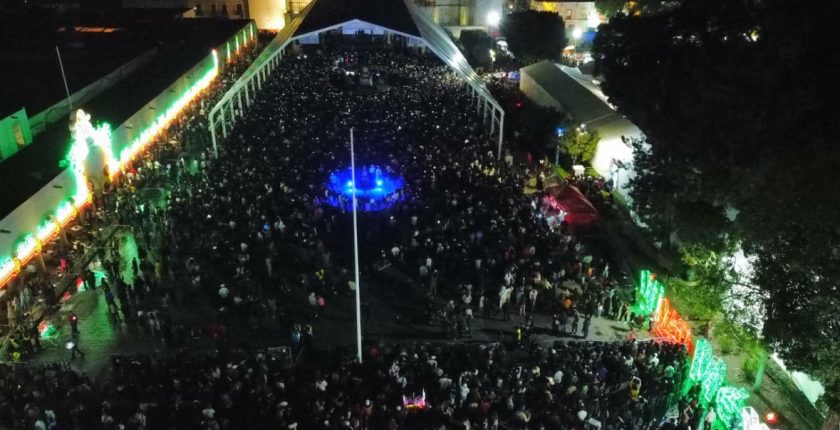 Una Plaza de la Concordia, portales y pasillos del parque abarrotados con más de 60 mil personas fue el escenario que recibió al reguetonero El Bogueto, quien se presentó en el foro artístico de la Gran Feria de San Pedro Cholula, cerrando la noche entre coros y baile.