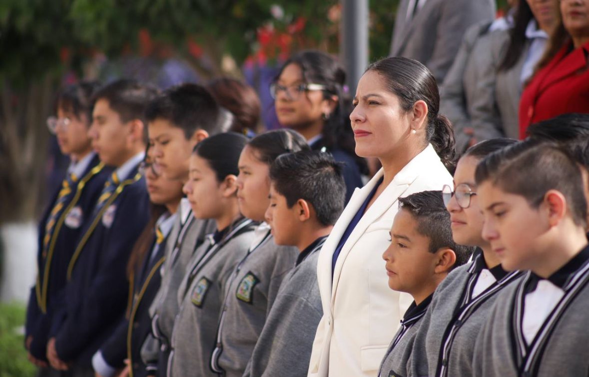 La presidenta Lupita Cuautle Torres, encabezó la ceremonia del gobierno municipal que encabeza en compañía del gabinete, servidoras y servidores públicos y de estudiantes de la primaria del Centro Escolar Dr. Alfredo Toxqui Fernández de Lara y de la primaria Paz Montaño quienes participaron en la actividad “Un día con la presidenta”.