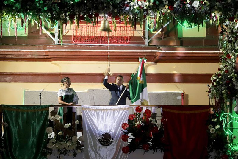 El presidente municipal, Mundo Tlatehui, en compañía de su esposa Lupita Cuautle Torres, presidenta del Sistema Municipal para el Desarrollo Integral de la Familia (SMDIF), la síndico, regidoras y regidores, encabezó el tradicional Grito de Independencia en la explanada del Zócalo de San Andrés Cholula