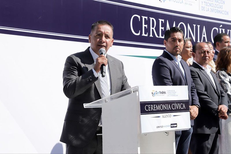 El presidente municipal de San Andrés Cholula, Mundo Tlatehui, entregó 13 nuevas patrullas a la Secretaría de Seguridad Pública y Protección Ciudadana (SSPPC) dentro de la ceremonia de honores a la bandera correspondiente al mes de agosto.