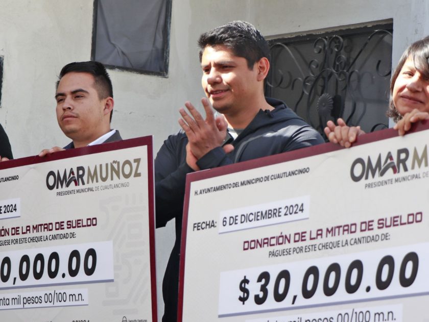 Omar Muñoz, presidente municipal de Cuautlancingo, realizó la entrega simbólica de la mitad de su salario para la realización de más obras sociales en el municipio, cumpliendo así con el compromiso hecho en campaña con los ciudadanos.