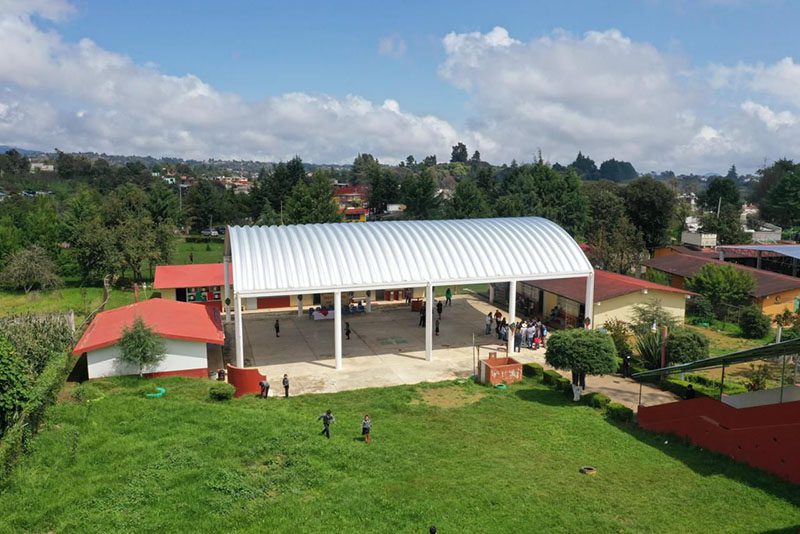 Este techado beneficia a 126 niñas y niños que podrán realizar actividades físicas y ceremonias cívicas sin importar las inclemencias del tiempo, con una dimensión de 403.86 metros cuadrados y cuyos trabajos incluyeron las terracerías, cimentación, estructura e instalación eléctrica.