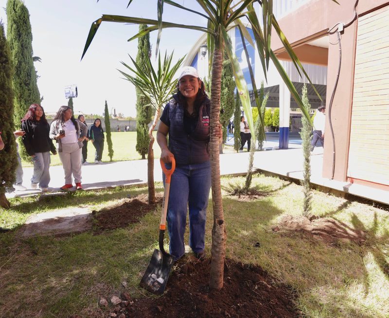 En su mensaje, la alcaldesa resaltó que esta actividad, realizada en colaboración con estudiantes y docentes de la institución, contribuye a fomentar el cuidado del medio ambiente entre las juventudes del municipio. Destacó que la siembra de árboles y plantas genera entornos más saludables y alegres, además de fortalecer la responsabilidad comunitaria, ya que la tarea, ahora, es cuidarlos, regarlos y mantenerlos en buen estado.