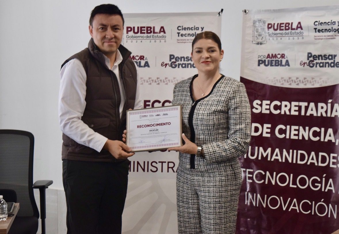 El Gobierno de Puebla a través de la Secretaría de Ciencia, Humanidades, Tecnología e Innovación, entregó un reconocimiento a la presidenta municipal de Zacatlán, Bety Sánchez por cumplir con la simplificación de trámites, brindando un servicio de calidad y sin burocracia a las y los zacatecos.