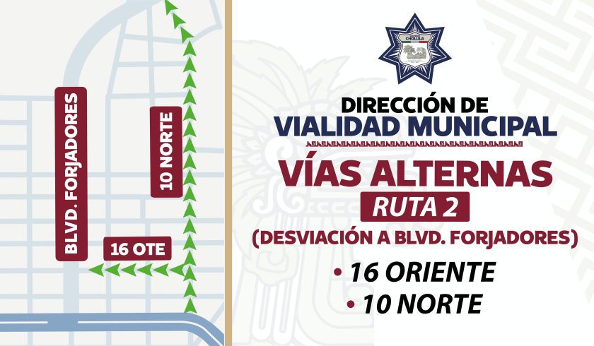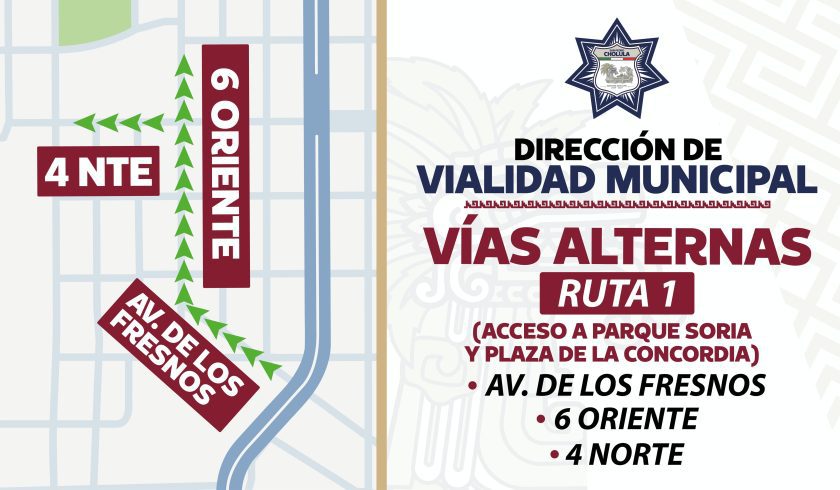 Para facilitar el acceso y mejorar la movilidad en la zona, la Dirección de Vialidad Municipal habilitará como vías alternas la Avenida de los Fresnos y la 6 Oriente. Para quienes transiten hacia otras áreas del municipio, se recomienda utilizar el Bulevar Forjadores, la calle 10 Norte y la 16 Oriente. Elementos de vialidad estarán desplegados en puntos estratégicos para evitar congestionamientos.