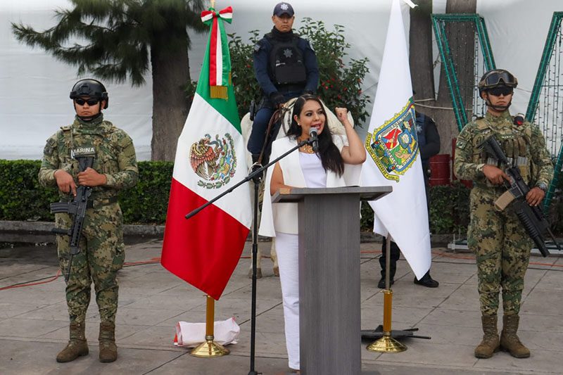 En este marco, se llevó a cabo la Ceremonia Conmemorativa del 15 de Septiembre, encabezada por la presidenta municipal, integrantes del Ayuntamiento y funcionarios, quienes rindieron honores a la Bandera Nacional en la Plaza de la Concordia, con la presencia de elementos de la Secretaría de Seguridad Ciudadana, trabajadores municipales y ciudadanía en general.