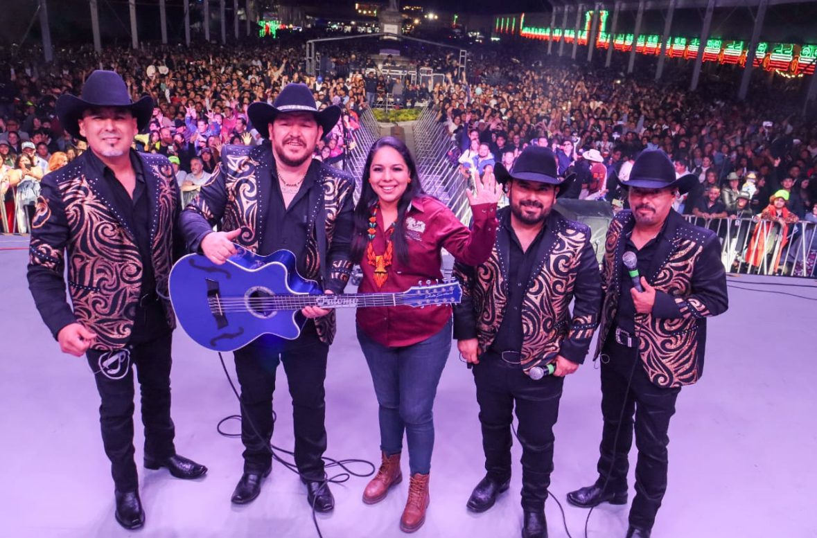 En medio del concierto, la presidenta municipal Tonantzin Fernández entregó un reconocimiento y un obsequio a los integrantes de Grupo Palomo, agradeciéndoles su visita y por engalanar esta gran fiesta de las y los cholultecas.