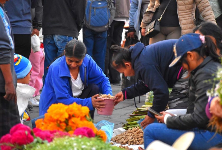 Esta madrugada los asistentes pudieron intercambiar cazuelas por jícamas, frutas por flores, cazuelas por verduras o pan, entre muchos otros objetos que han traído para celebrar el trueque, posterior a esta actividad se realiza la Plaza Grande que es el comercio de todo tipo de productos para las ofrendas a los muertos.