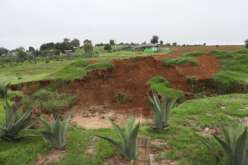 La funcionaria indicó que la filtración de agua de lluvias y la humedad hicieron que el hoyo alcance un diámetro de 15 metros por dos de profundidad. Agregó que la vivienda más cercana está a 400 metros del hundimiento, por lo que un equipo interdisciplinario de la Coordinación General de Protección Civil Estatal y la Secretaría de Infraestructura acudió al lugar para evaluar si existe riesgo para la población.
