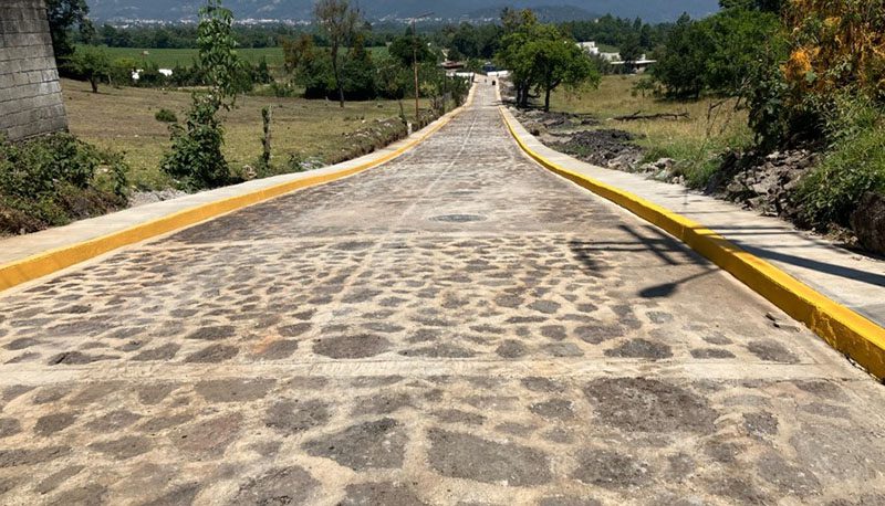 En el municipio de Yaonáhuac, la dependencia intervino con empedrado las calles 5 de Febrero y Primero de Mayo.