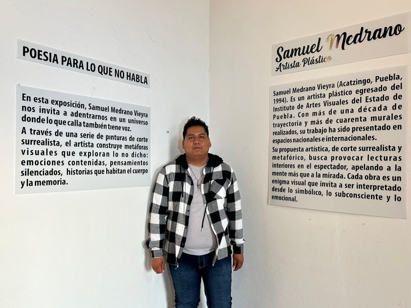 Por su parte, “Poesía para lo que no habla” es una propuesta del artista visual Samuel Medrano, reconocido por su labor en murales en distintos puntos de México y por llevar su arte a países como Guatemala y Estados Unidos.