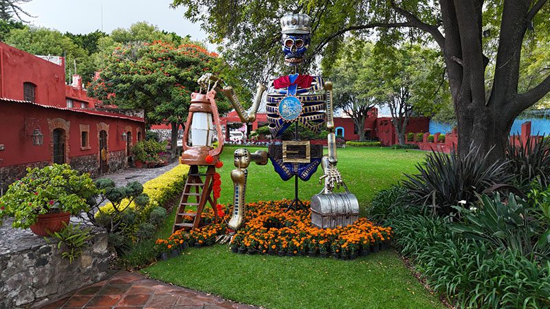 Ariadna Ayala, presidenta de Atlixco, presenta “La Catrina Ferrocarrilero”, una de las obras más representativas del Festival Internacional Valle de Catrinas 2025, instalada en el histórico Molino de San Mateo.