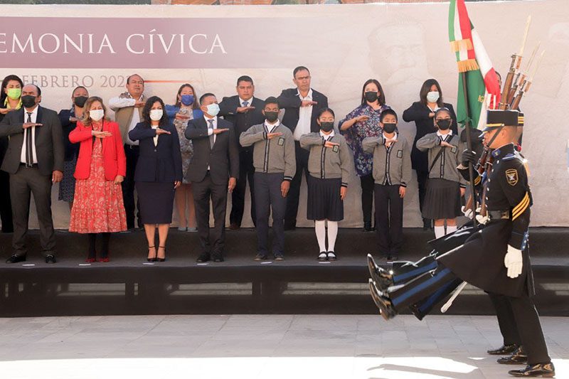 El presidente municipal, Mundo Tlatehui, en compañía de la síndico, regidores, regidoras e integrantes del gabinete, encabezaron la Ceremonia Cívica correspondiente al mes de febrero, donde también participaron las y los alumnos de la Primaria Federal 15 de Mayo y la Telesecundaria Víctor Hugo, quienes integran el programa «Un Día con el Presidente».