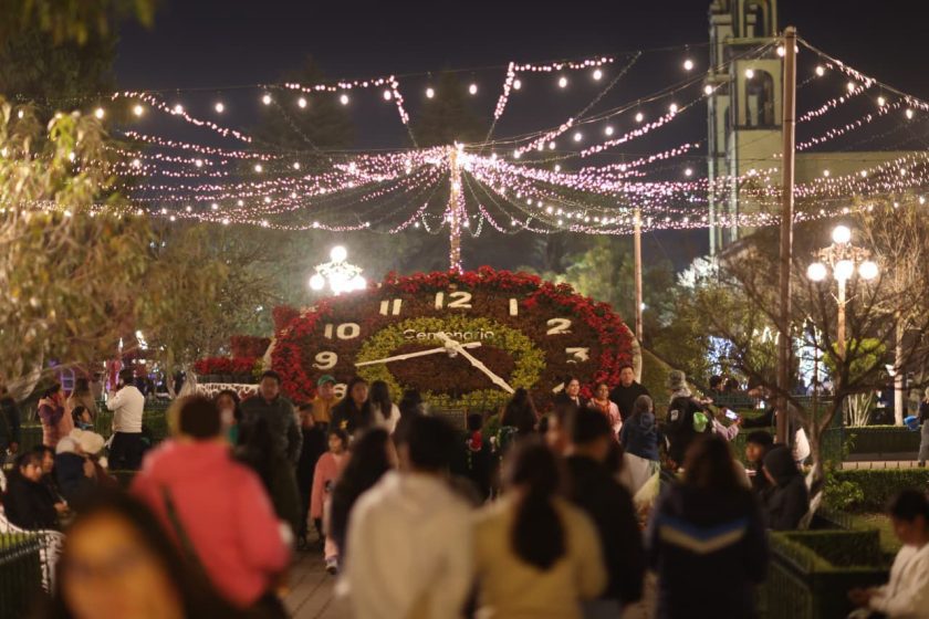 Después de sus voces, vino el encendido de las luces, y con ello la iluminación de todo el zócalo de Zacatlán: el árbol de Navidad, el Palacio Municipal, el camellón de la Navidad, el reloj floral, el kiosco, la casita de jengibre, entre otras cosas.