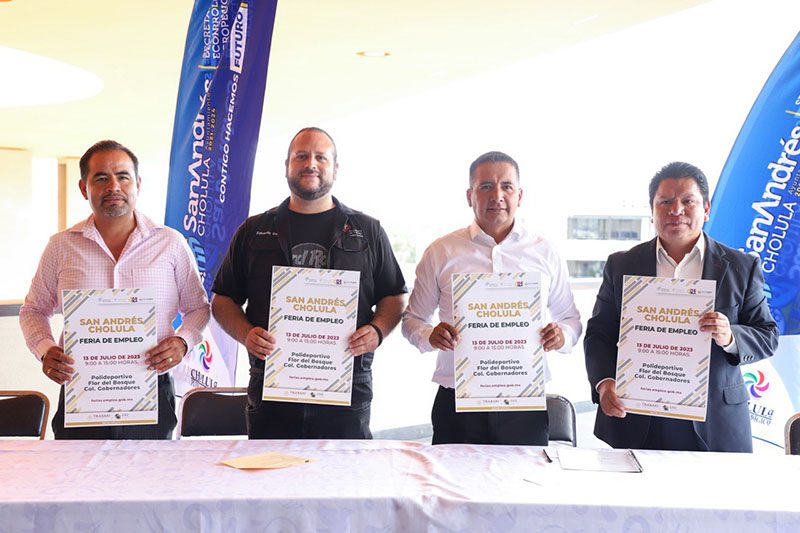 El presidente municipal de San Andrés Cholula, Mundo Tlatehui, encabezó la rueda de prensa de presentación de la Segunda Feria de Empleo que se desarrollará en colaboración con la Secretaría de Trabajo estatal y el Servicio Nacional de Empleo delegación Puebla.